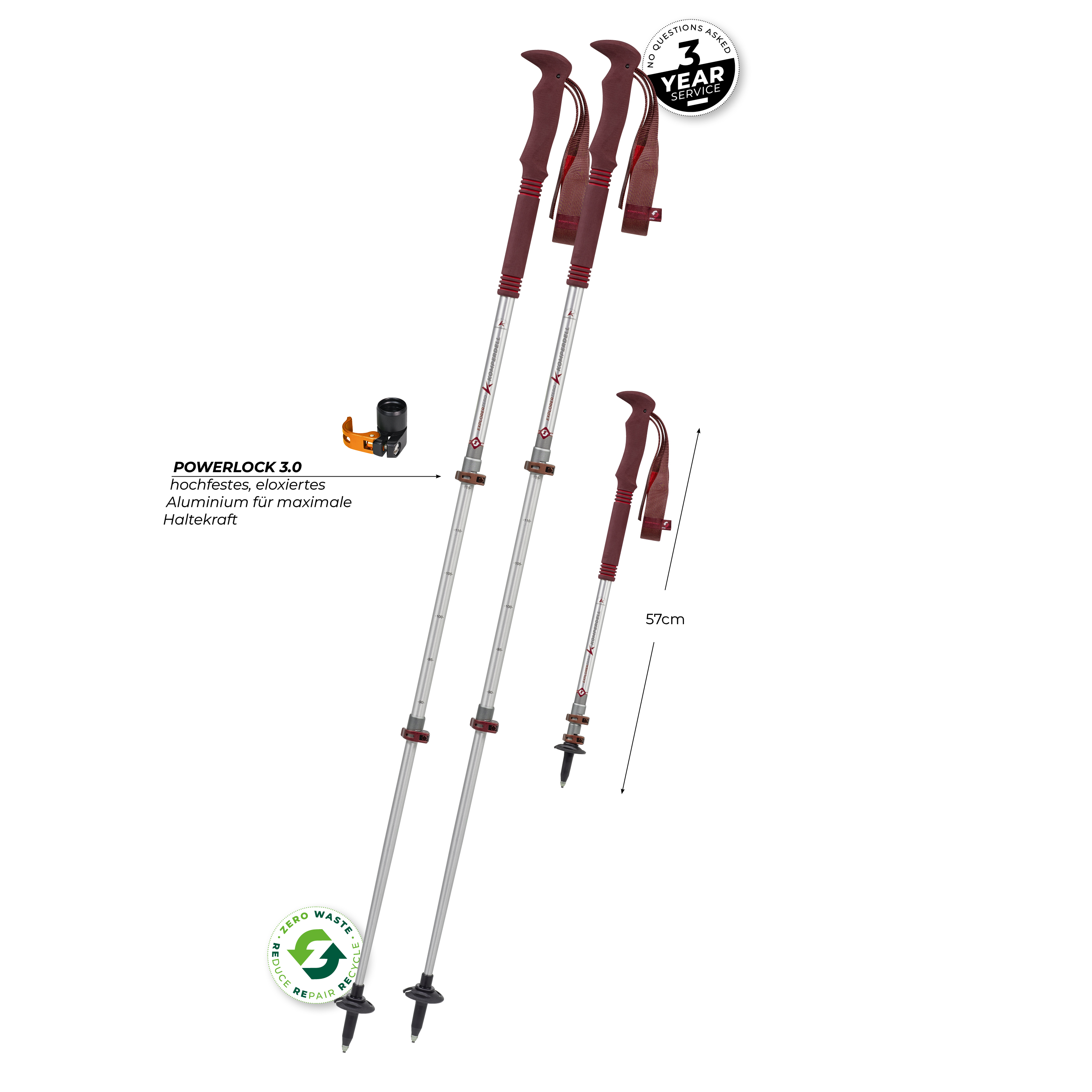 Dry and clean your poles after usage. Always store your telescopic poles in the non-fixed setting! Never use lubricants on or in the shaft or on the locking system! Attention: