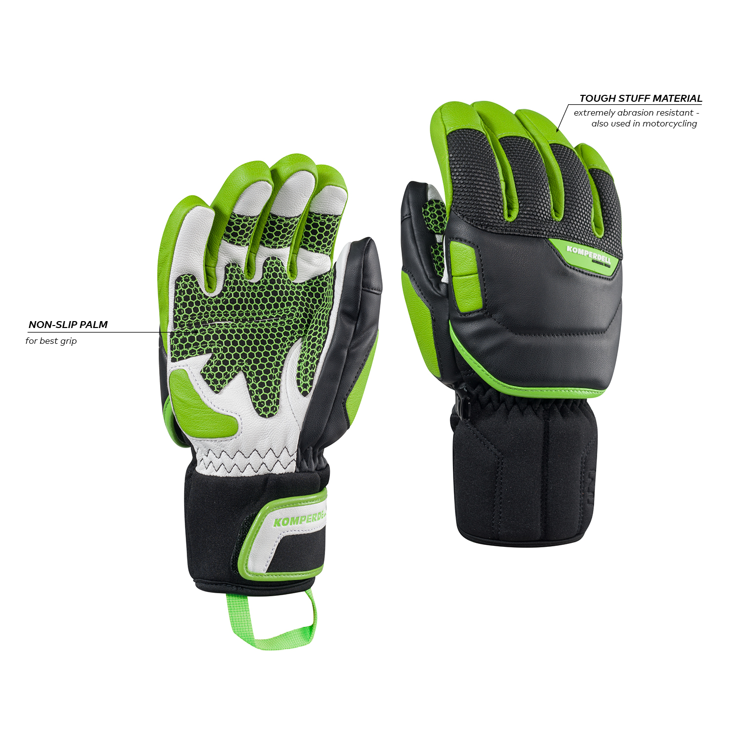 Rigid aluminium pole in black-green Komperdell design for real World Cup feeling!