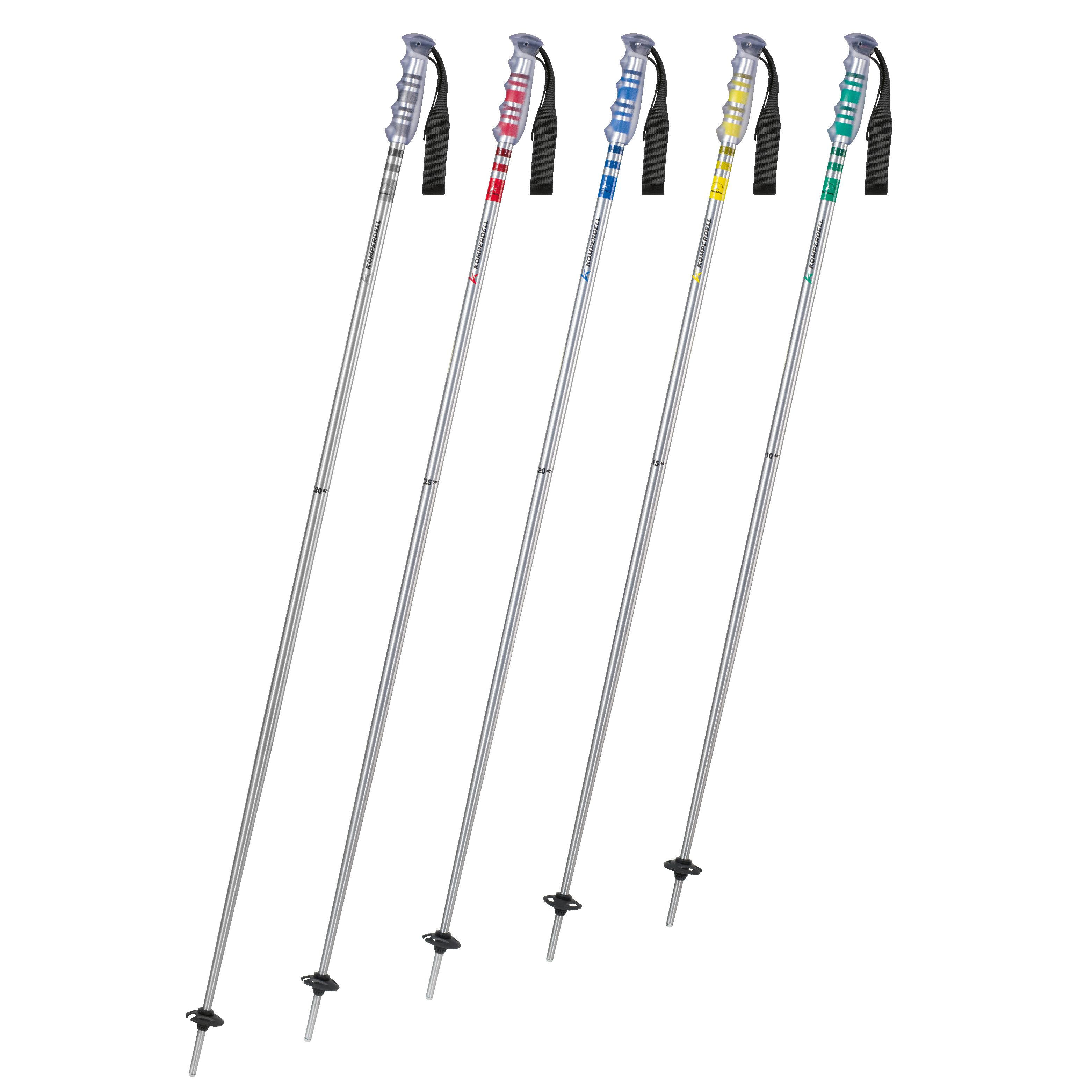Robust aluminium pole for kids with a soft thermo grip and colour code system.